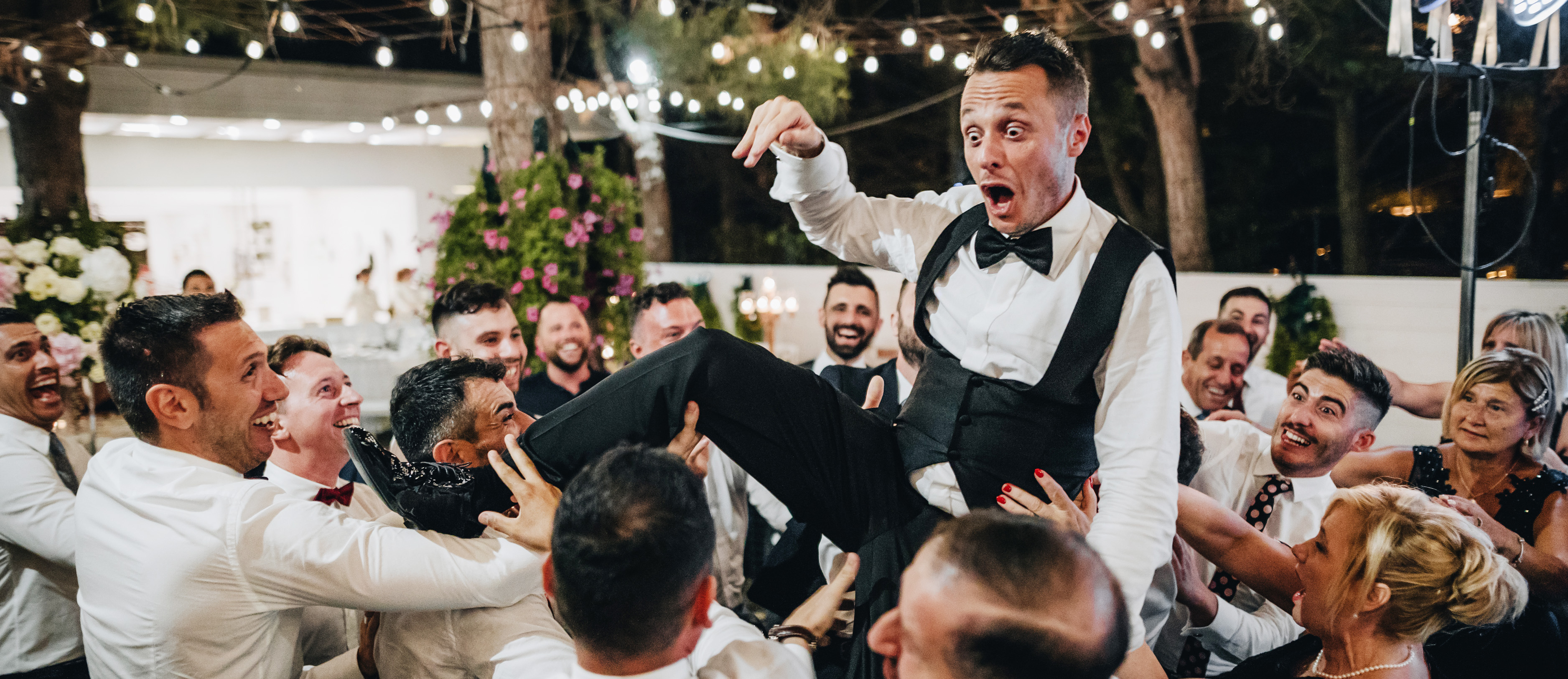 La festa per noi è il momento in cui gli sposi devono divertirsi, rilassarsi e godersi la giornata. Per questo motivo ci impegniamo e facciamo in modo che, una volta arrivati al ristorante, gli sposi possano pensare solo ai loro invitati senza essere mai sottratti ai festeggiamenti. Noi siamo accanto a voi con l’occhio sveglio per portare a casa ogni brindisi, gioco, scherzo e ballo così da completare il reportage fotografico e video in ogni singolo particolare. Non abbiamo limiti di orari quindi siamo con voi fino al termine della festa e sempre disponibili in caso vogliate fare delle altre foto anche con gli invitati.